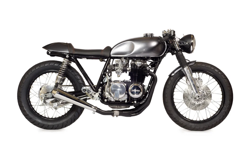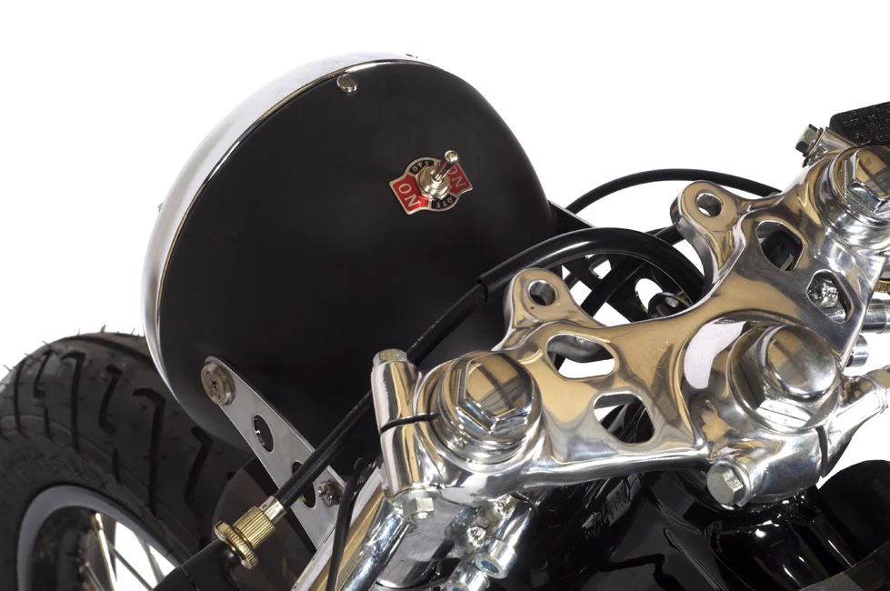 /The bike hearkens its name from the hometown where it now resides. This also being part of the charcoal series was given distinguishing marks to set it apart from the others. A couple of these marks include an inline black center stripe from the custom front fender "new in 2012" into the fuel tank and an a uniquely designed custom seat. The uniqueness of the seat design incorporated 3 centered lightening holes to reveal ambient tail-lighting as well as orange stitching on the seat upholstery which introduced a trifecta of color. This bike can be seen featured on the new 2013 Kott Motorcycles t-shirt design.